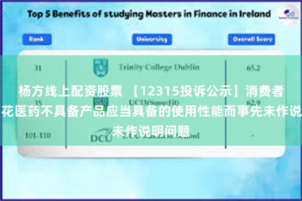 你的位置:广东股票配资公司-广东炒股配资公司_东莞股票配资公司 > 广东炒股配资公司 > 杨方线上配资股票 【12315投诉公示】消费者投诉百花医药不具备产品应当具备的使用性能而事先未作说明问题