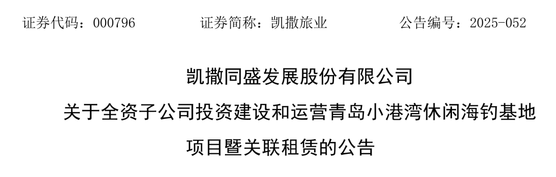 根据规划,凯撒旅业全资子公司凯撒海湾目的地(山东)运营管理有限责任公司(简称 “凯撒海湾”)将斥资约 7554.07 万元(不含租金),在青岛小港湾打造集休闲海钓、滨海旅游、商业服务于一体的综合性海钓基地。项目实施需租赁控股股东青岛环海湾文化旅游发展集团有限公司(简称 “环海湾文旅”)旗下 5.85 公顷海域,租赁期限 20 年,租金总额 2680.49 万元。此次投资及关联交易均通过合规审议,不构成重大资产重组,预计 2026 年 4 月进入试运营阶段,将成为凯撒旅业布局海洋文旅的关键落子。